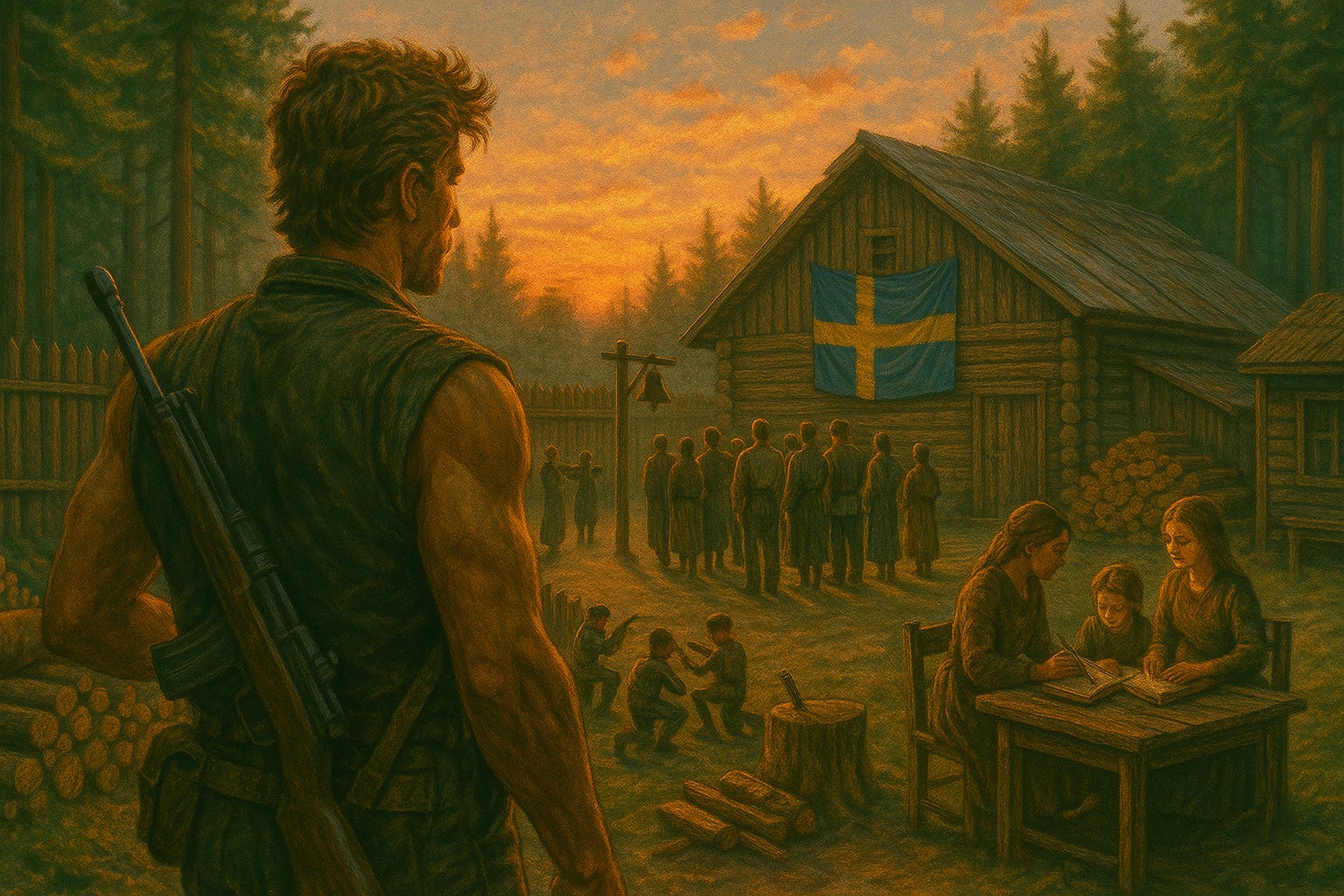 “…only Swedes inside the perimeter. Farmers, builders, teachers welcome. No looters. No cowards. Symbol required. Daily roll call at sunrise. The choir will sing after evening meal…”